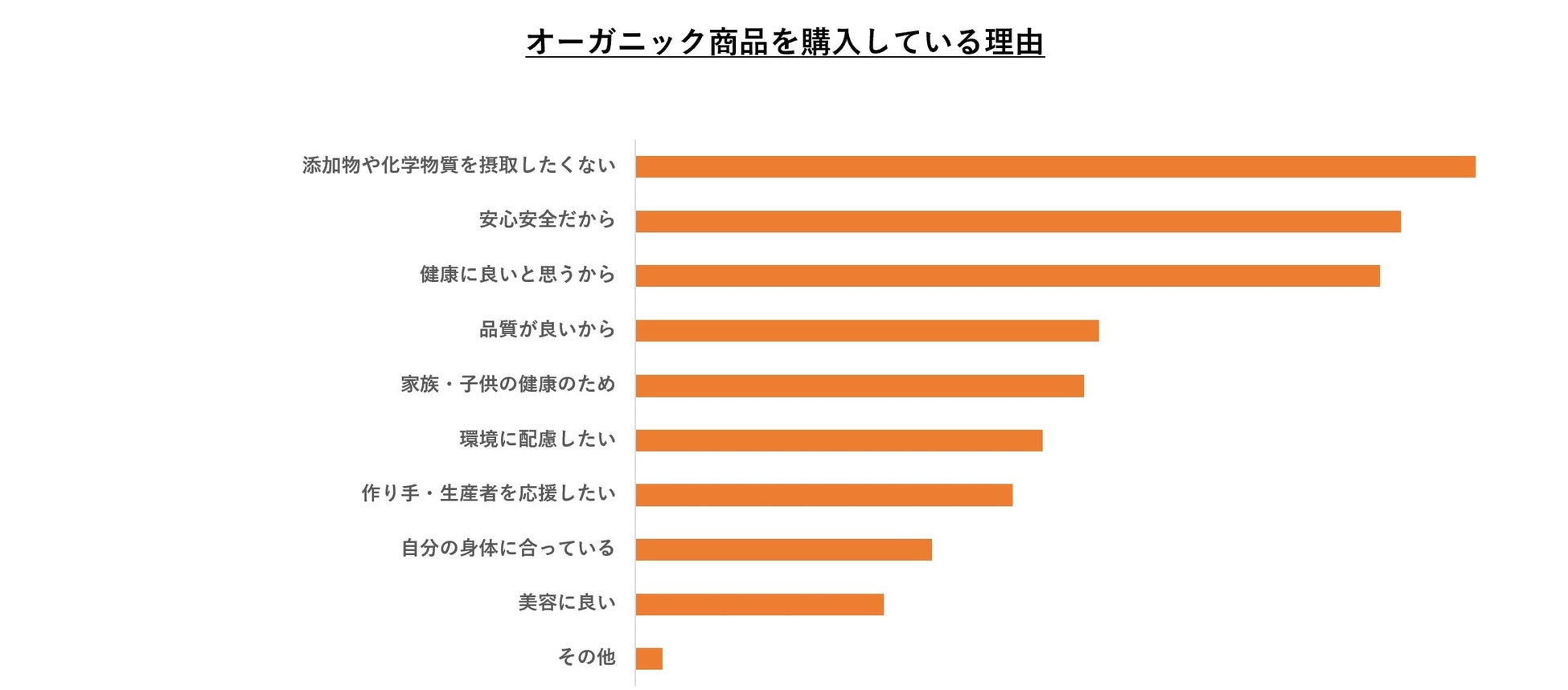 消費者庁が今年の3月30日に食品添加物の不使用表示に関するガイドラインを策定し、ニュースでも話題になりました。栄養面はもちろん、特に栽培工程や添加物など細部まで気を付けている方が多い結果となりました。