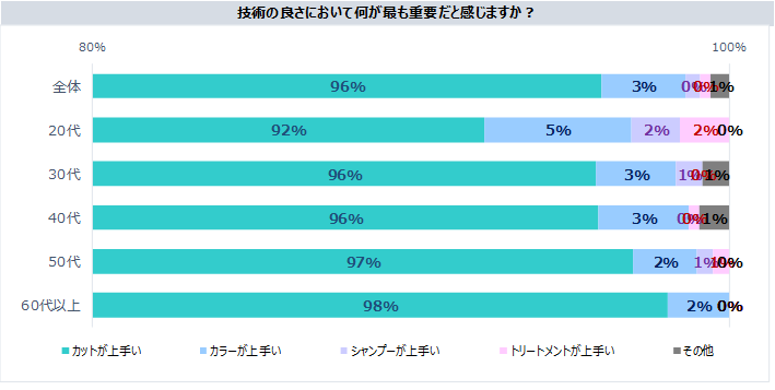 3. 「技術の良さ」はカットの上手さ、「イメージ通りの仕上がり」には美容師のセンスと理解力。