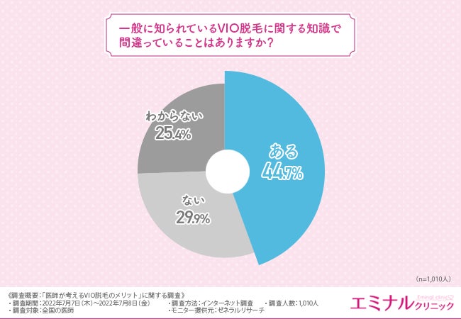 そこで、「一般に知られているVIO脱毛に関する知識で間違っていることはありますか?」と質問したところ、4割以上の医師が『ある(44.7%)』と回答しました。