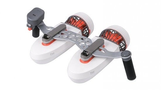 世界最小サイズのダブルプロペラ搭載の水中スクーターです。片手で持ち運べる3.5kgの超軽量設計ながら、最大6.48km/hを実現。ボタンをギュッと握るだけで、泳ぐことができない人でもトップスイマーと同様の速度を体験できます!