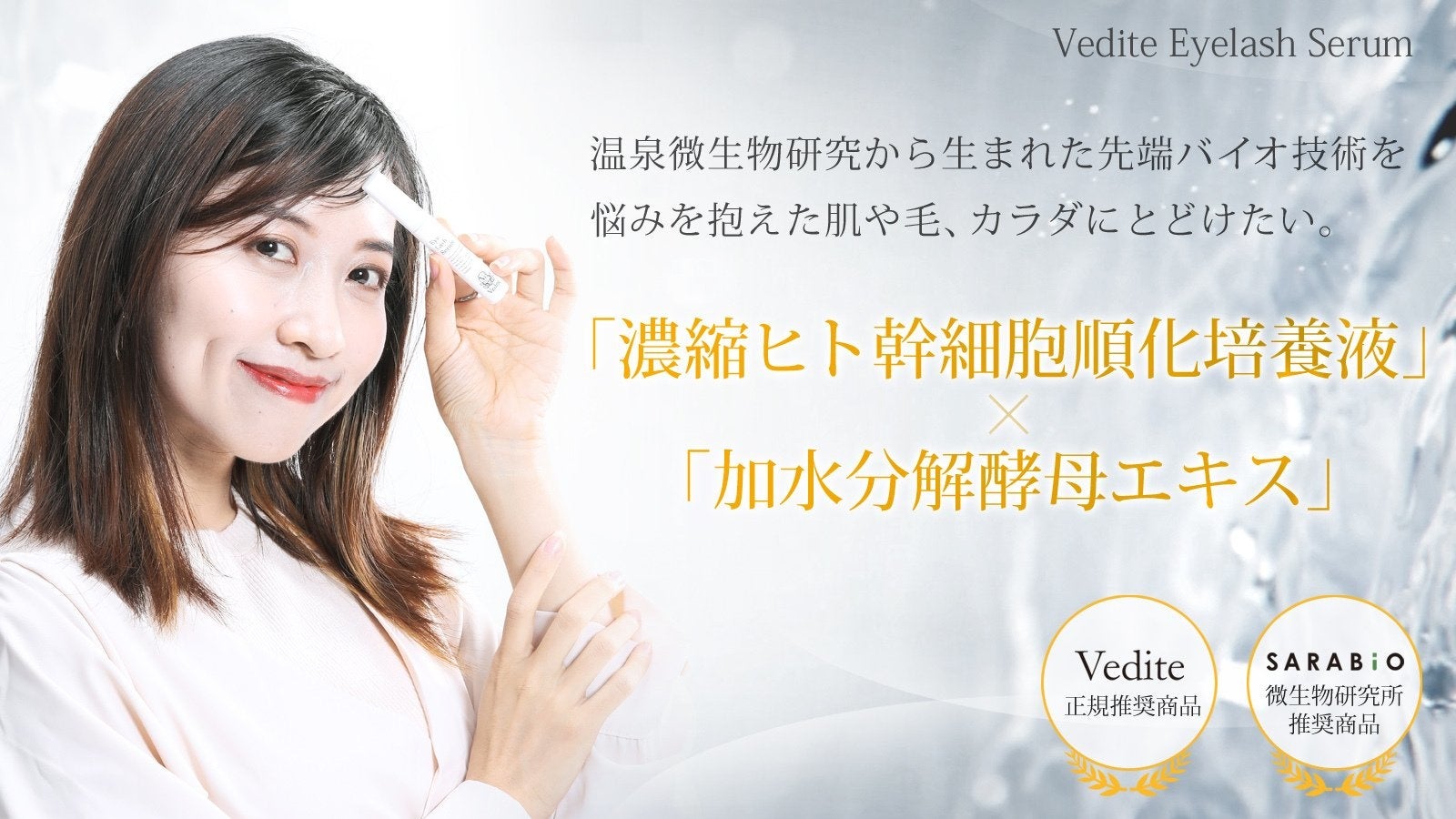 株式会社ウィステリア(本社:東京都千代田区、代表取締役:伊藤暢彦、以下「当社」)は、株式会社SARABiO温泉微生物研究所(本社:大分県別府市、代表取締役 濱田拓也)の研究・開発した「濃縮ヒト脂肪由来幹細胞順化培養液/加水分解酵母エキス 配合 まつげ美容液」を、株式会社Global Glizea(本社:福岡県福岡市、代表取締役 椛島里枝)の有するブランド「Vedite(ヴィディーテ)」にて、同社傘下のエクステサロン及び公式ショップ限定で2022年10月より販売を開始いたします。