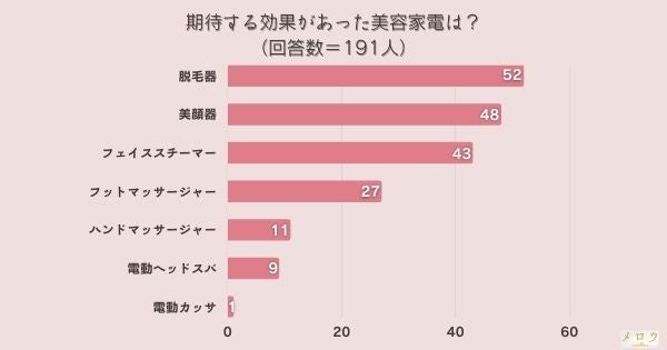 「期待する効果があった美容家電は?」とアンケート調査した結果、1位は『脱毛器』でした。