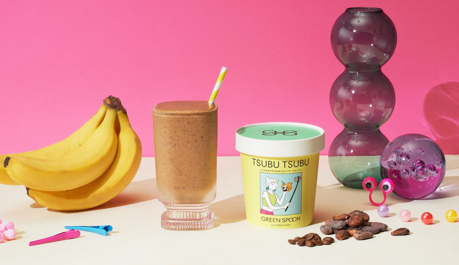 完熟バナナをベースに贅沢カカオのつぶつぶ食感が止まらない!?この夏だけの特別なバナナコーヒースムージー。