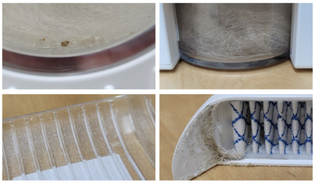 ブラシに絡んだ毛や汚れは自動的に分離処理されます。使用後、残り毛や汚染物質までオートクリーンモードで綺麗に。ブラシに絡んだ毛をいちいち手入れする必要がないので、お手入れも楽々です。