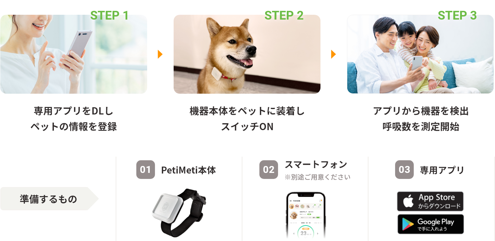 PetiMetiはご自身のスマートフォンとアプリを使えば、どなたでも簡単にご利用を開始できます。