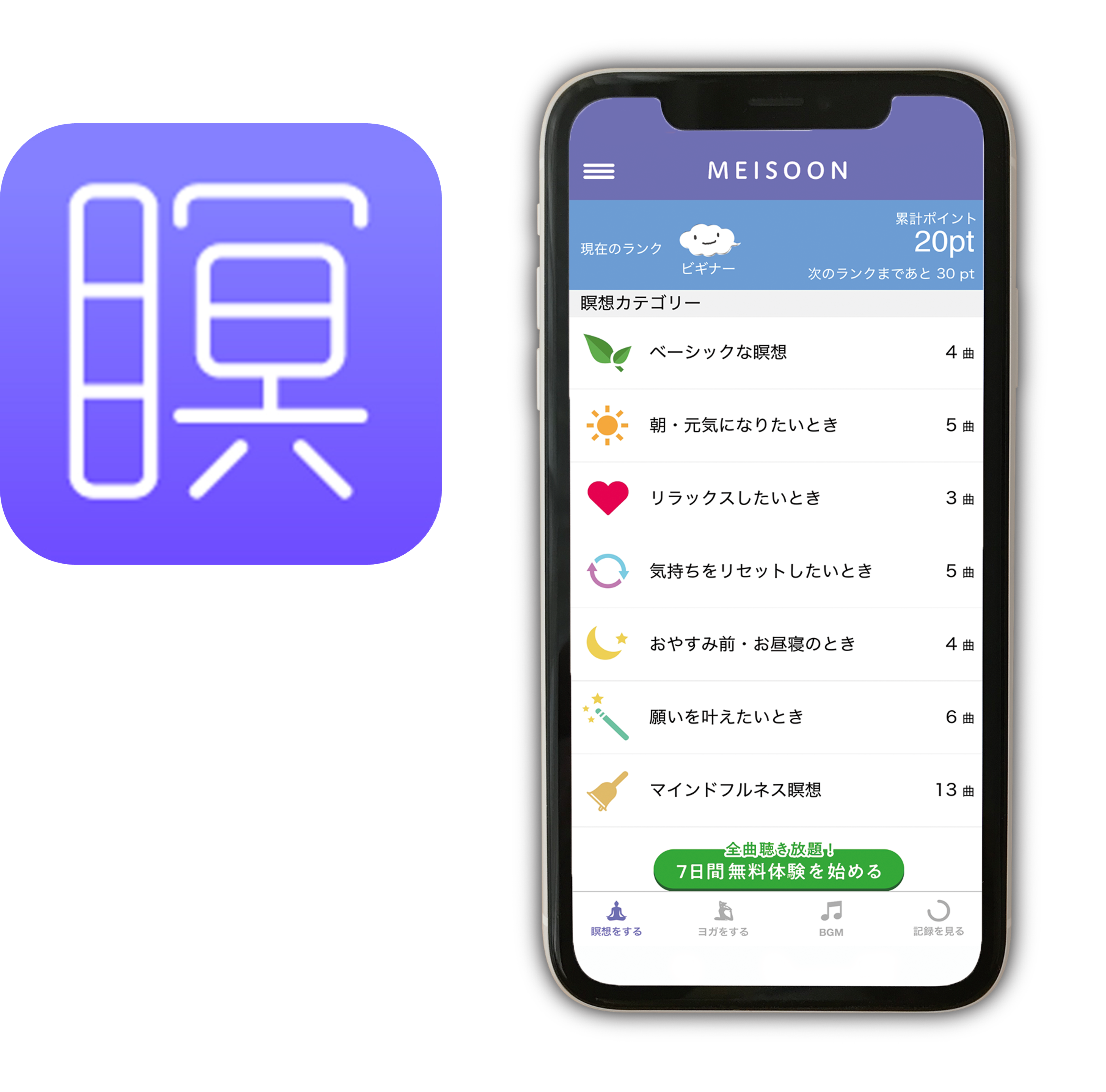 アプリ名:誰でも、どこでも、今すぐ瞑想!「MEISOON」