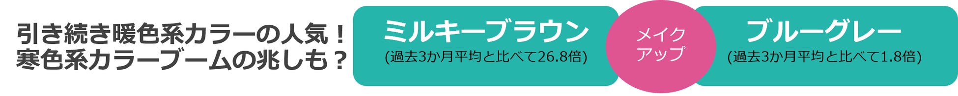 ・引き続き暖色系カラーの人気継続しつつも、寒色系カラーブームの兆しも?