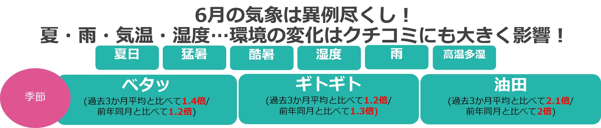 ・6月の気象は異例尽くし!夏・雨・気温・湿度…環境の変化はクチコミにも大きく影響!