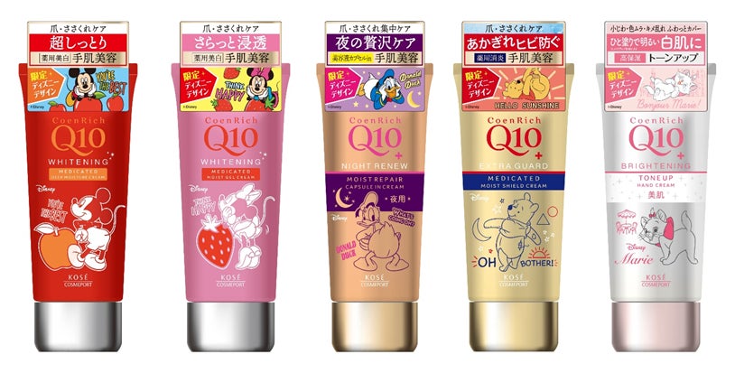 今年も主力商品を中心に、使用感やご使用シーンで選べる5品目5品種を発売します。コロナウイルス感染症拡大の影響を受け手洗い・消毒機会が増えたことで手肌悩みが生じたと感じている人が増えておりハンドクリームの使用頻度が大幅に増加しています。今回、長年多くの方から愛されるキャラクターが描かれた『コエンリッチ』ディズニーデザインを発売することで、ハンドケアシーンをより一層楽しく、ワクワクするようなひと時になることを願い発売します。