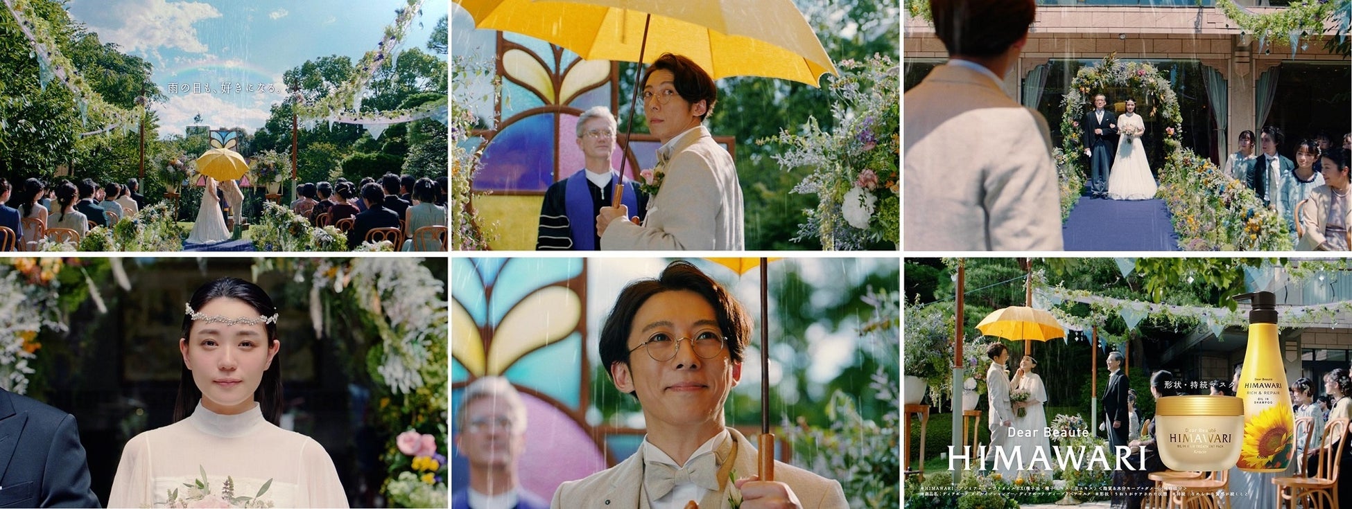 「髪のゆがみ」を整え、素直な髪に導く「ディアボーテ HIMAWARI」のメッセージは「雨の日も、好きになる」。憂鬱な気分になりがちな雨の日でも、ふしぎな雨男と彼女が、遂にたどり着いた『幸せ』を一緒に感じていただけるCMに仕上がりました。