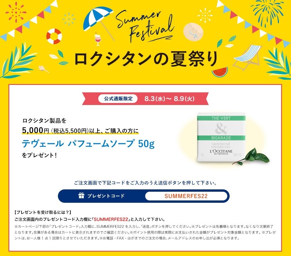 この機会にロクシタン店舗や公式通販サイトで夏祭りに参加して、ロクシタン製品をもらっちゃおう!