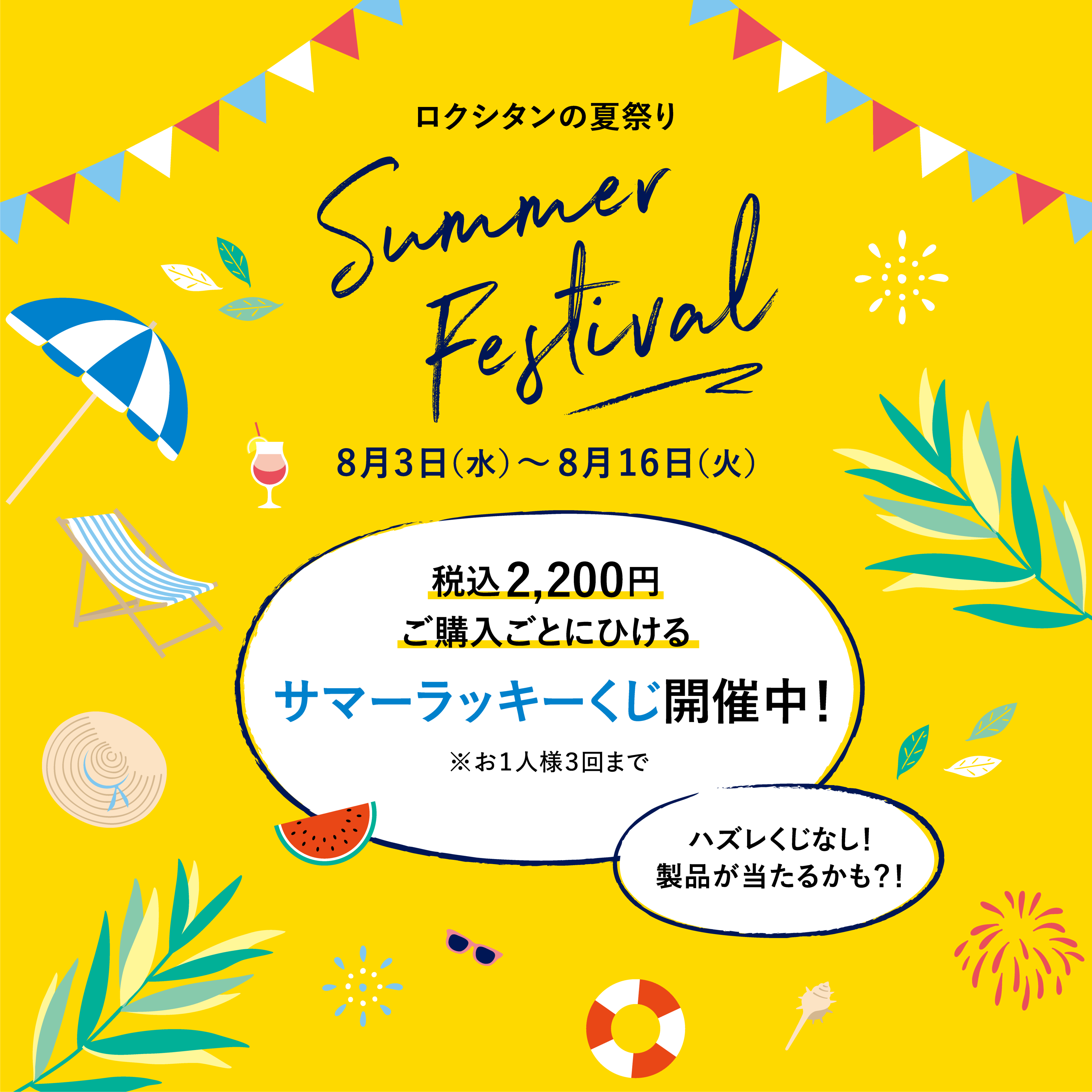 内容:ロクシタン製品を税込2,200円以上毎に、ロクシタン製品が当たるサマーラッキーくじがひけます。