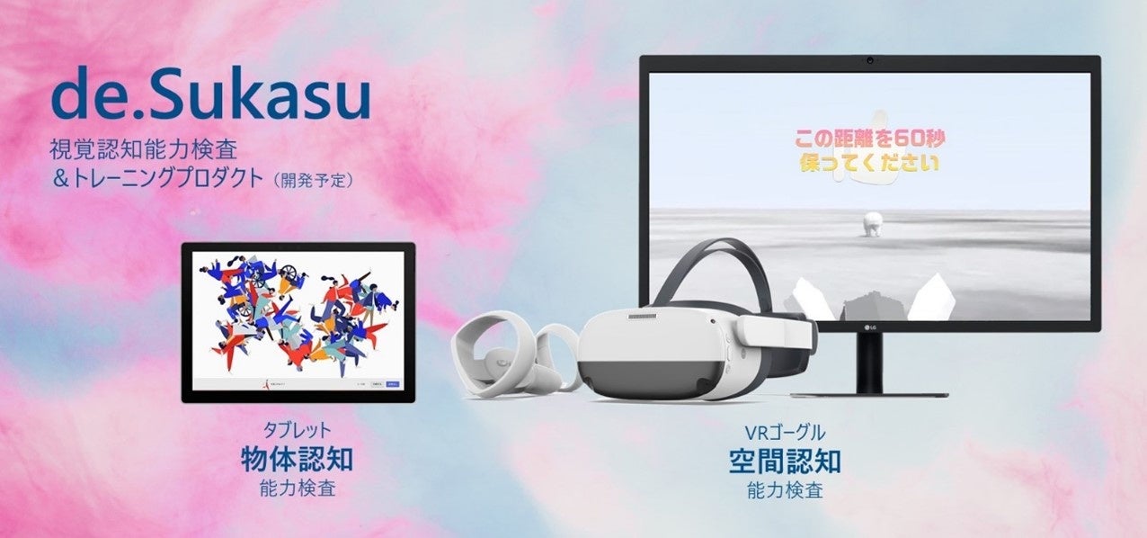 「 de.Sukasu」はヴァーチャル・リアリティ(以下VR)およびタブレットを用いて、視覚認知能力、物体認知能力を把握するdo.Sukasuプロダクトです。