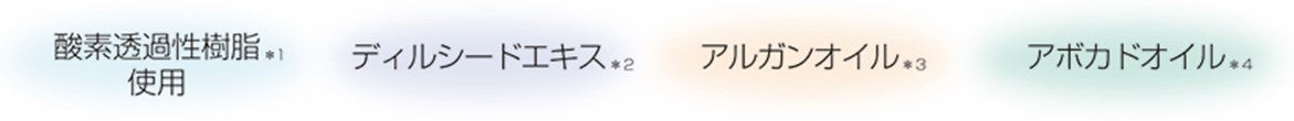 *2 イノンド種子エキス(保湿) *3 アルガニアスピノサ核油(保湿) *4 アボカド油(保湿)