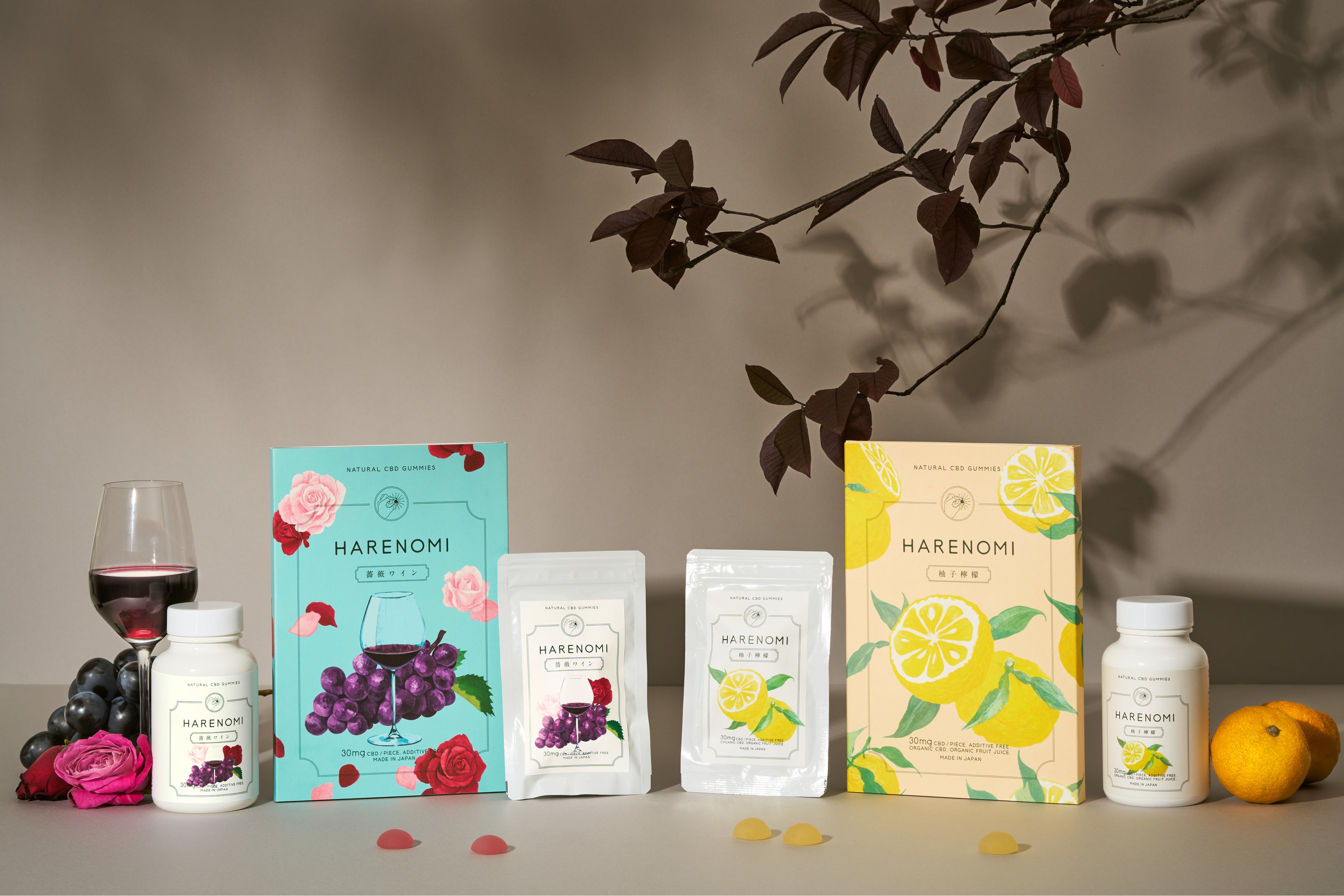 「HARENOMI」は、「あしたが楽しみな人を増やしたい」という思いで開発された、天然由来のCBD(カンナビジオール)成分を1粒30mgと高濃度に配合したサプリグミです。CBD(カンナビジオール)は、健康・美容業界で注目される、麻から抽出される天然成分の1つです。リラックスタイムをサポートする成分として、世界中で人気となっており、海外ではコンビニやスーパーに置かれるなど、多くの人々の生活に浸透しています。 「HARENOMI」は、先行販売プラットフォームの「Makuake」にてCBD食品カテゴリ1位(購入者数・購入金額)を獲得し、2021年12月から『柚子檸檬味』を発売開始しました。その後、「ずっと仕事ばっかりしてる私には必須アイテム」「味も美味しくて濃度高めで好き」などのクチコミからSNSで話題となり、Amazonで栄養補助食品カテゴリ新着ランキング1位を獲得しました。7月に出た新フレーバーの『薔薇ワイン味』も、特に女性のお客様からご好評いただいています。