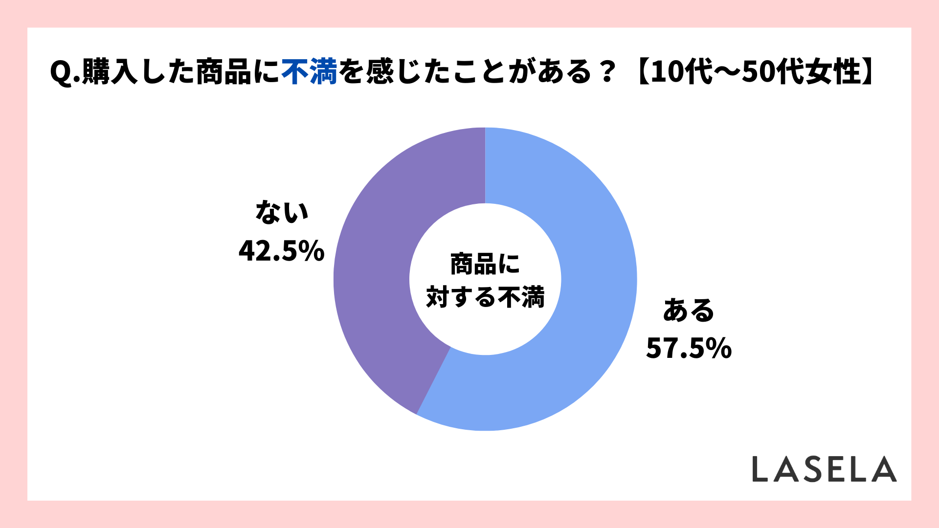 - 購入した美容商品に不満を感じたことがある人は半数以上