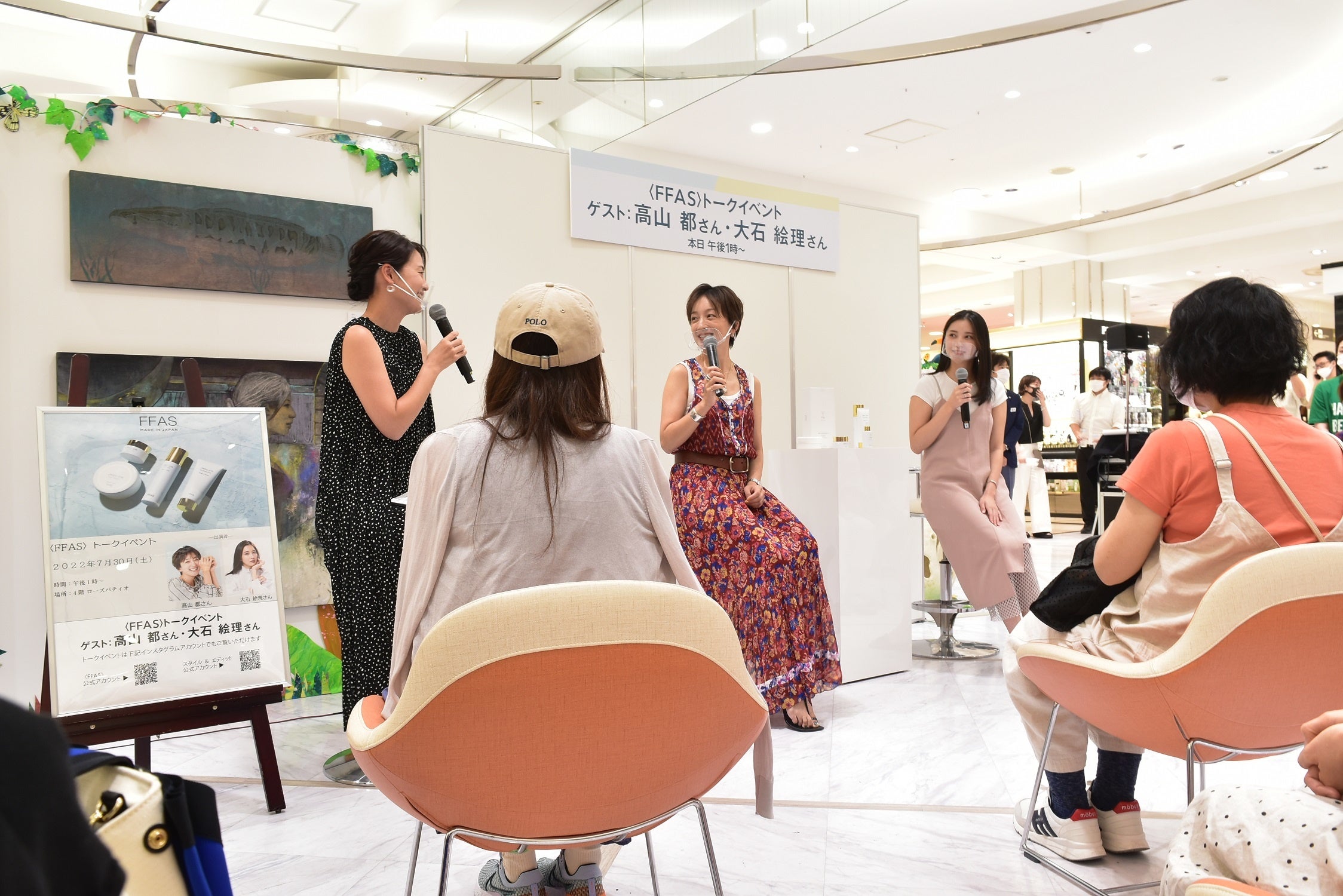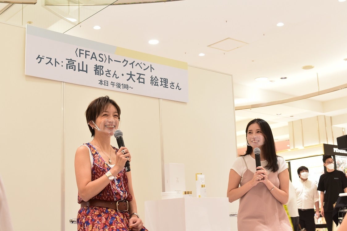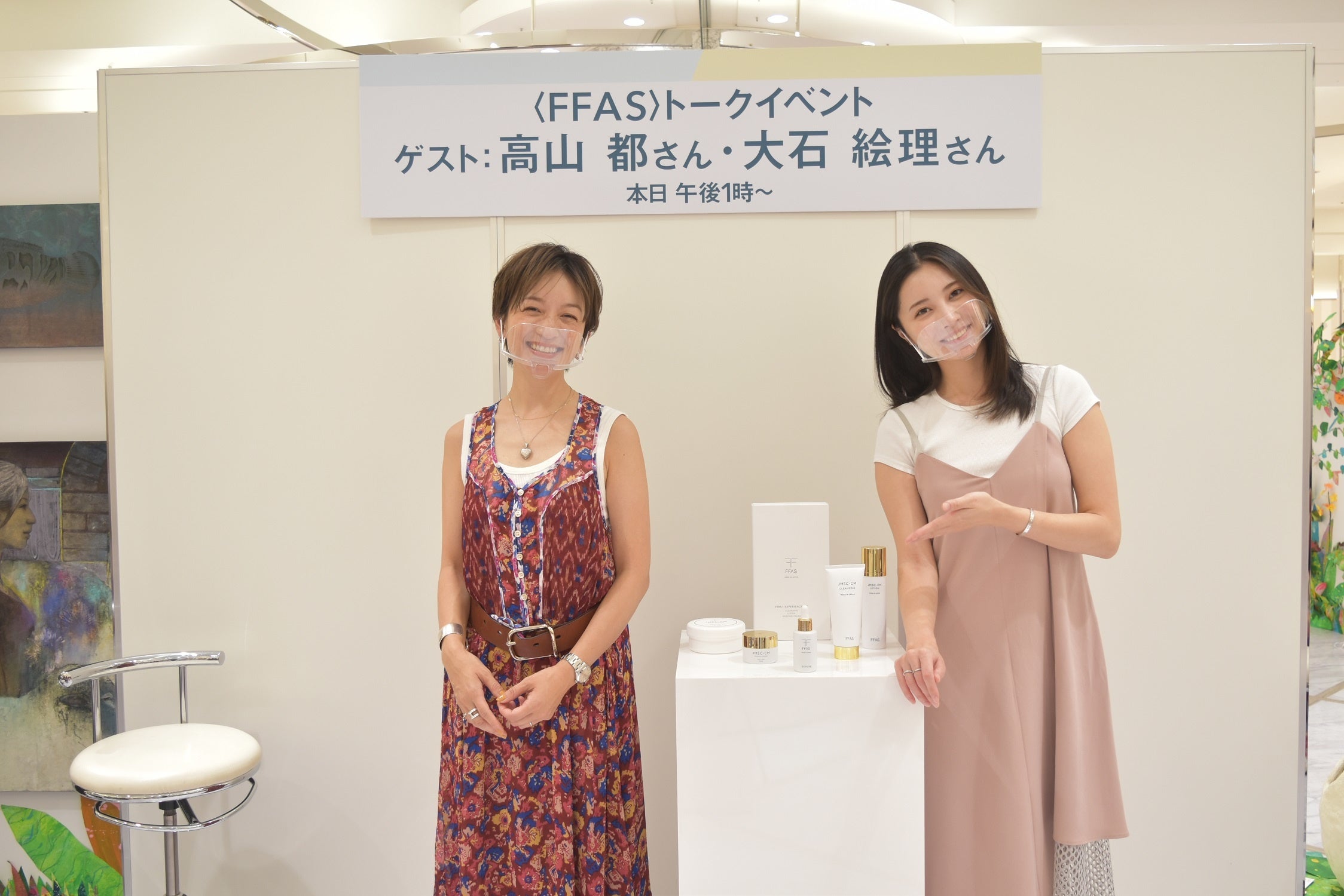 高山都さんと大石絵理さんがFFASの魅力から、自身の日々のスキンケア、ライフスタイルまで語って頂きました。まずは、FFASの商品に配合されている非常に珍しい成分である「100%日本製人幹細胞培養液」について、スキンケアをする中でお二人とも意識をされているという事でそれぞれ語って頂きました。