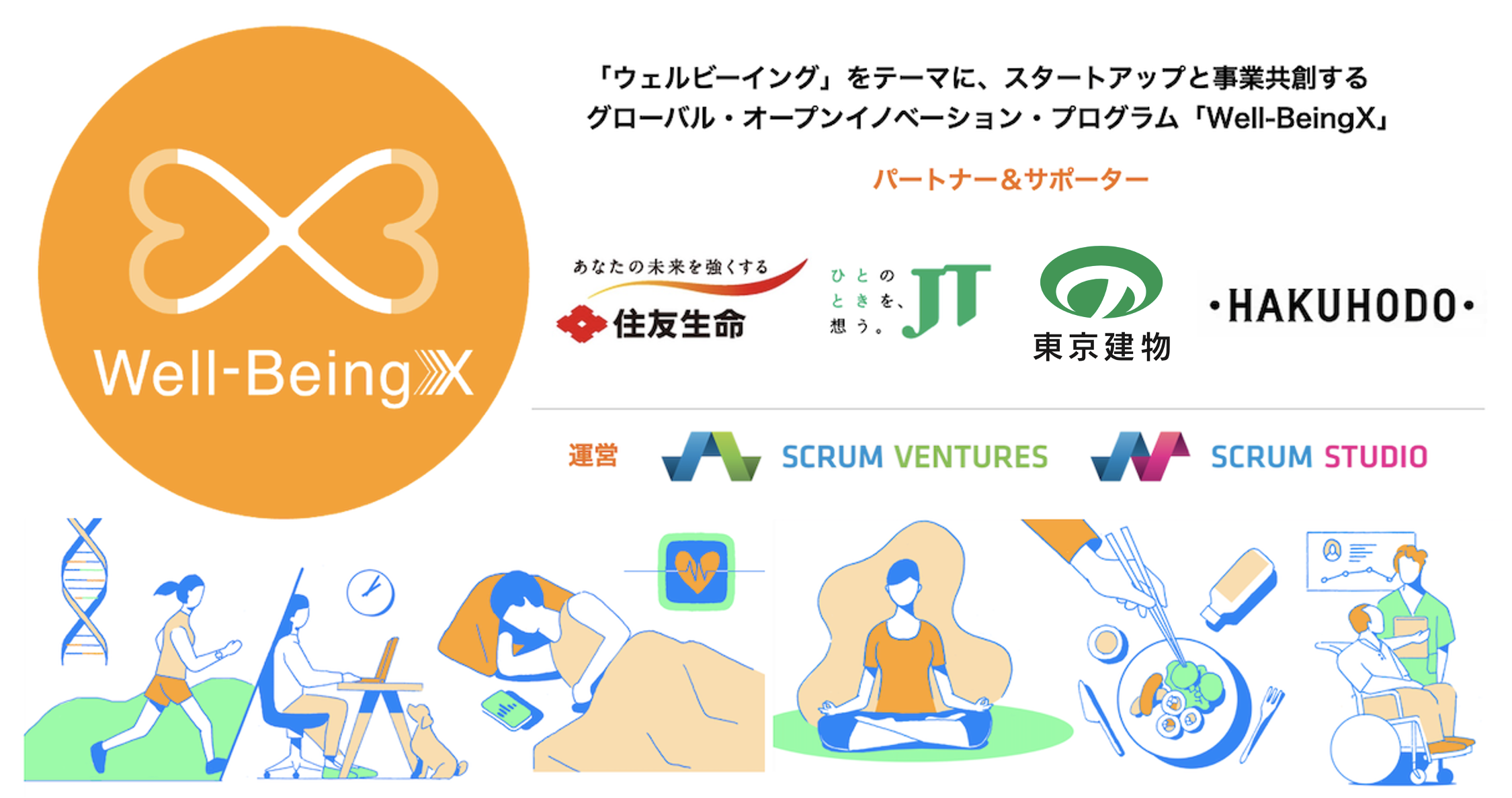 『Well-BeingX』は、業種を超えた企業と世界中の優れたスタートアップとともに、「多様なウェルビーイングの実現」に向けて事業共創する、グローバル・オープンイノベーション・プログラム。