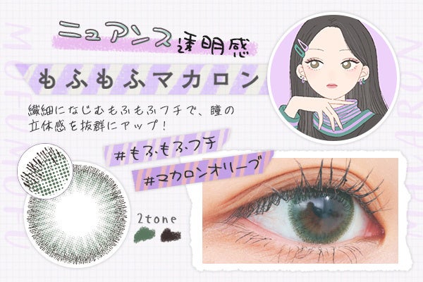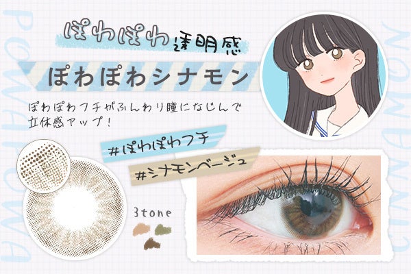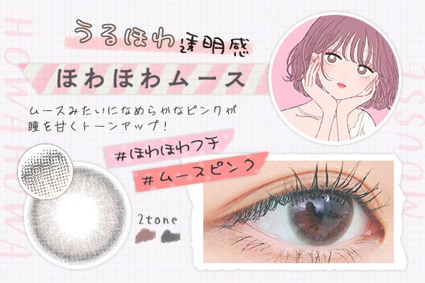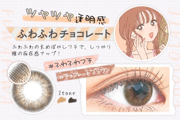 瞳の立体感を演出する絶妙なドットフチと黒目になじむ“プリズムカラー”で、キラキラとした瞳を演出。