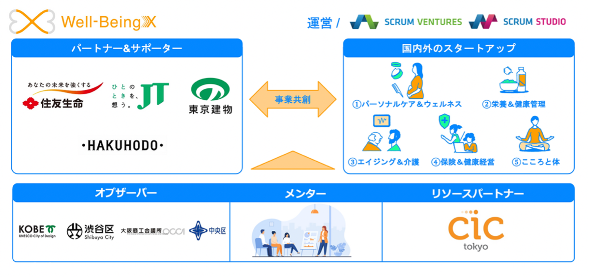 『Well-BeingX』は、スクラムスタジオが手がける「ウェルビーイング」をテーマに事業を共創するグローバル・オープンイノベーション・プログラムです。