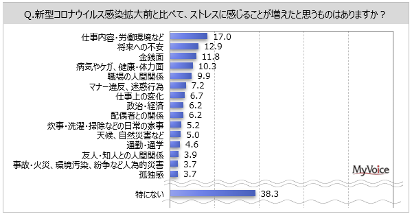 - 新型コロナウイルス感染拡大前と比べて、ストレスに感じることが増えたもの
