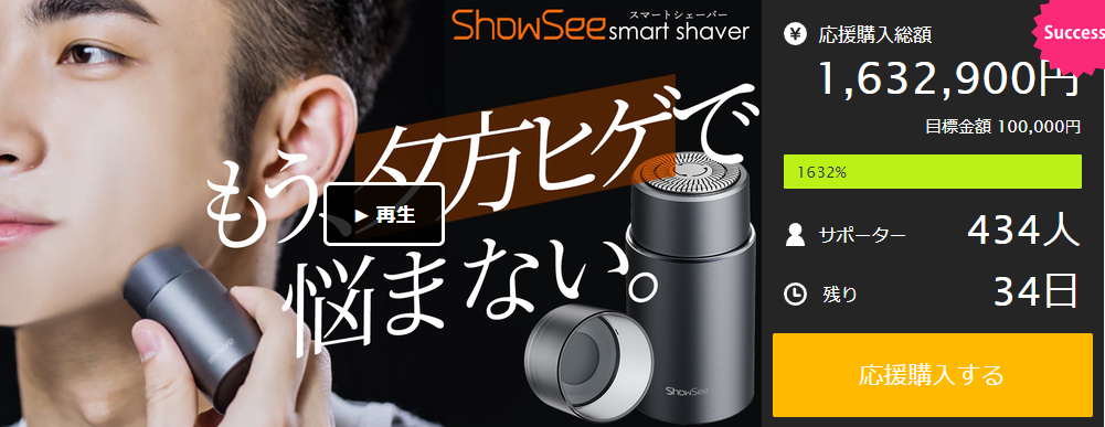 機能美を追求したコンパクトシェーバーShowSee Makuake先行販売開始一週間でサポーター400名超!