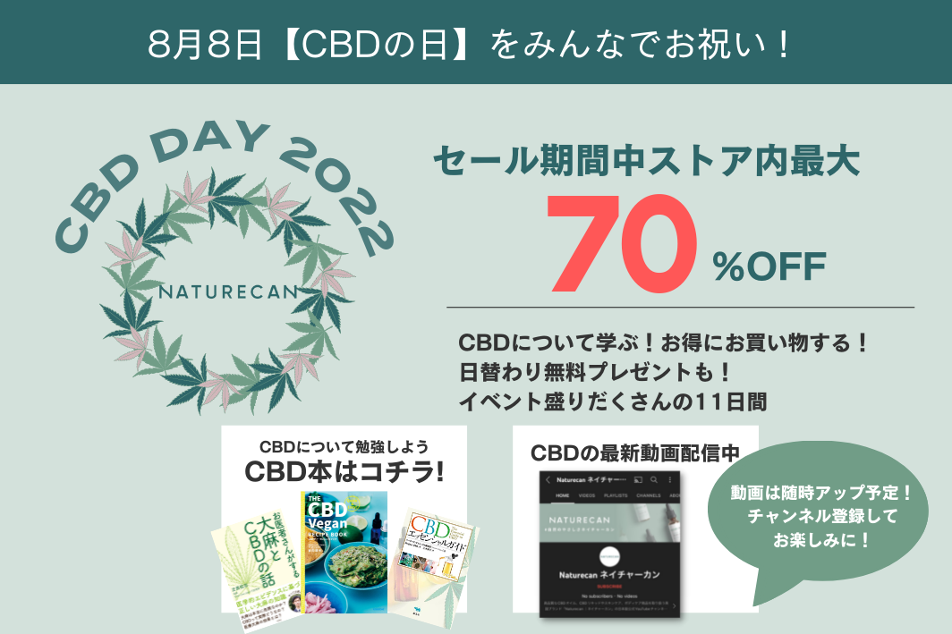 CBD専門店のNaturecan/ネイチャーカン(https://www.naturecan.jp/)では、8/5(金)から8/15(月)までの11日間「CBDの日セール」を開催しております。