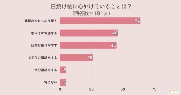 - 【総括】今回のアンケートで日焼け後に心がけていること1位は『化粧水をたっぷり使う』でした