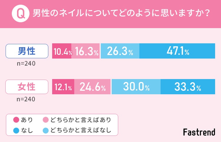 最後に、男性のネイルについてどのように思うか聞き、男女別に集計しました。