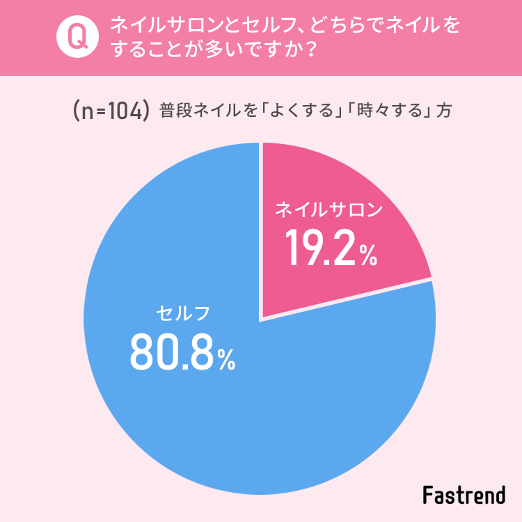 80.8%と多くの方がセルフでネイルを楽しんでいるようです。
