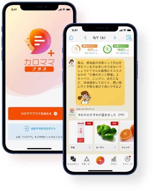 「カロママ プラス」は、PHR(パーソナル・ヘルス・レコード)を活用した日々の健康管理や、ひとりひとりの健康課題に適した健康アドバイス・提案をAIが自動でお届けします。