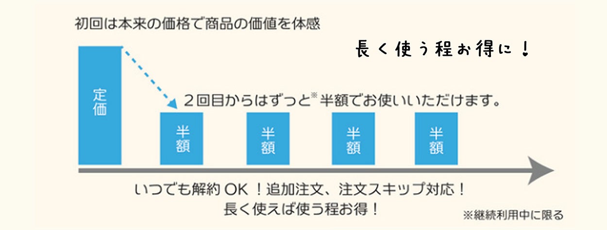 2回目以降ずっと半額でご利用いただける新しいサブスクを数量限定で開始させていただきます!