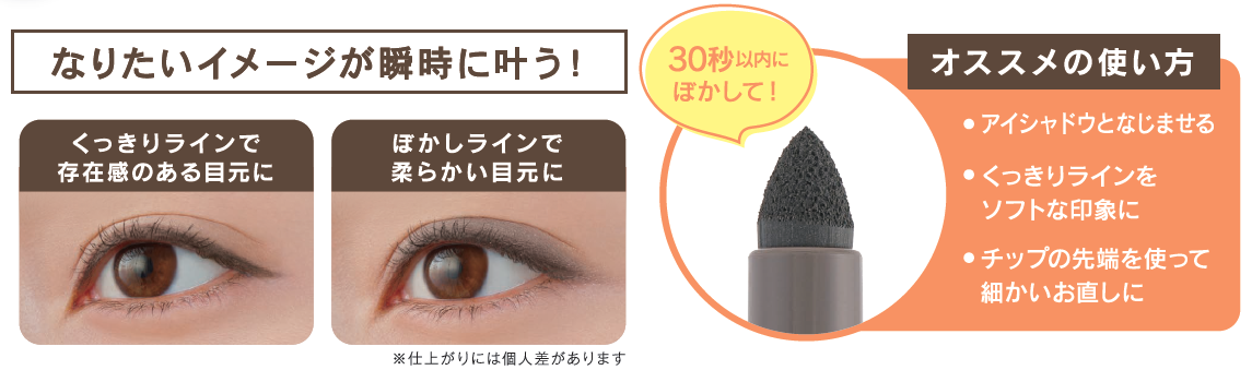 この度の新色「04 アッシュグレー」は目元が際立つ仕込みグレー。ブラックのアイライナーだと色に締まりがありすぎると感じる方でも使いやすい色味です。さらに限定色「05 ローズピンク」は粘膜カラーのくすみピンク。上品な透明感で目元に血色感を仕込みます。上まぶたにひいてぼかせば儚げな目元に、下まぶたにひけば目の重心がさがり、自然にあかぬけた小顔メイクも楽しめます。
