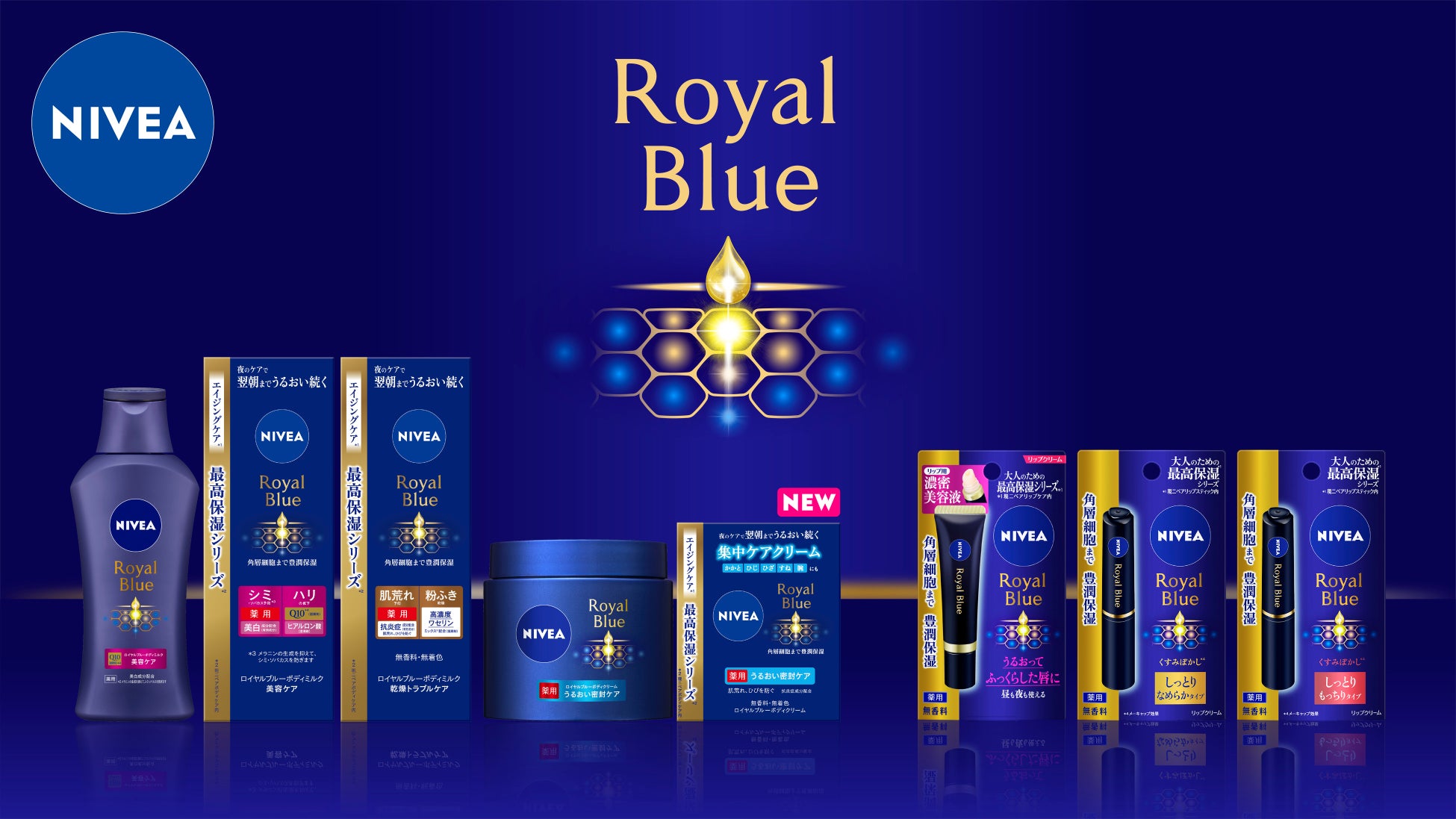 「ニベア」はスキンケアの総合ブランドとして、50~60代女性に向けて、ボディケアとリップケアのカテゴリーを横断してのご提案となる最高保湿シリーズ(*2)「ロイヤルブルー」を2020年に発売開始しました。その後も、肌や唇の乾燥に視点を置いて開発をすすめ、昨年秋には『ニベア ロイヤルブルーリップ濃密美容ケア【医薬部外品】』を発売、今回の新商品でシリーズ6品目のラインナップとなります。