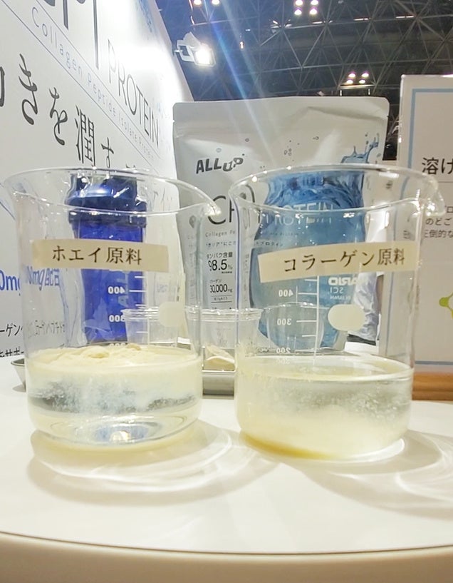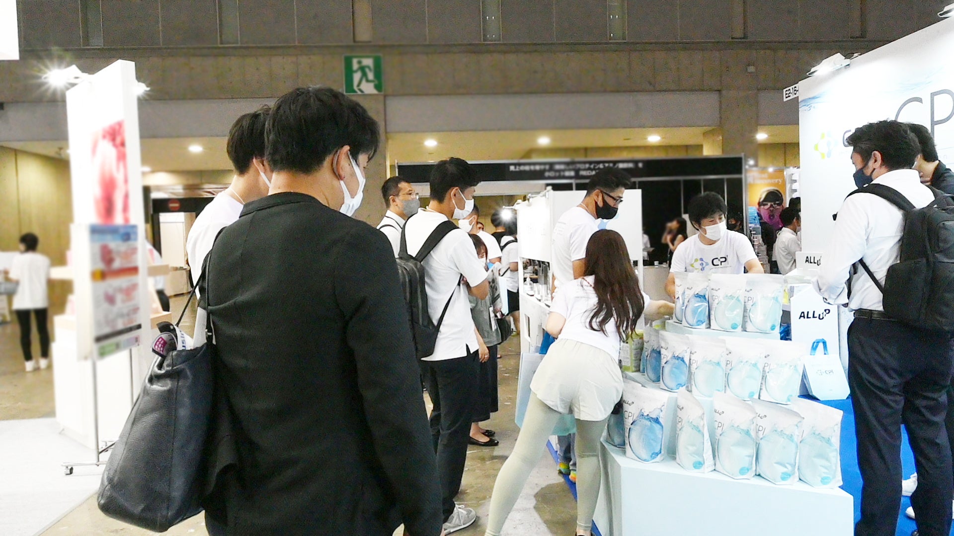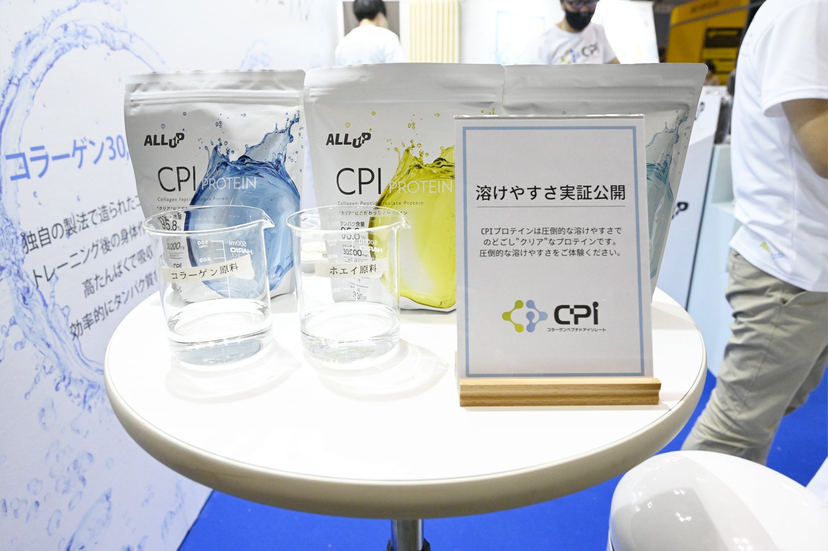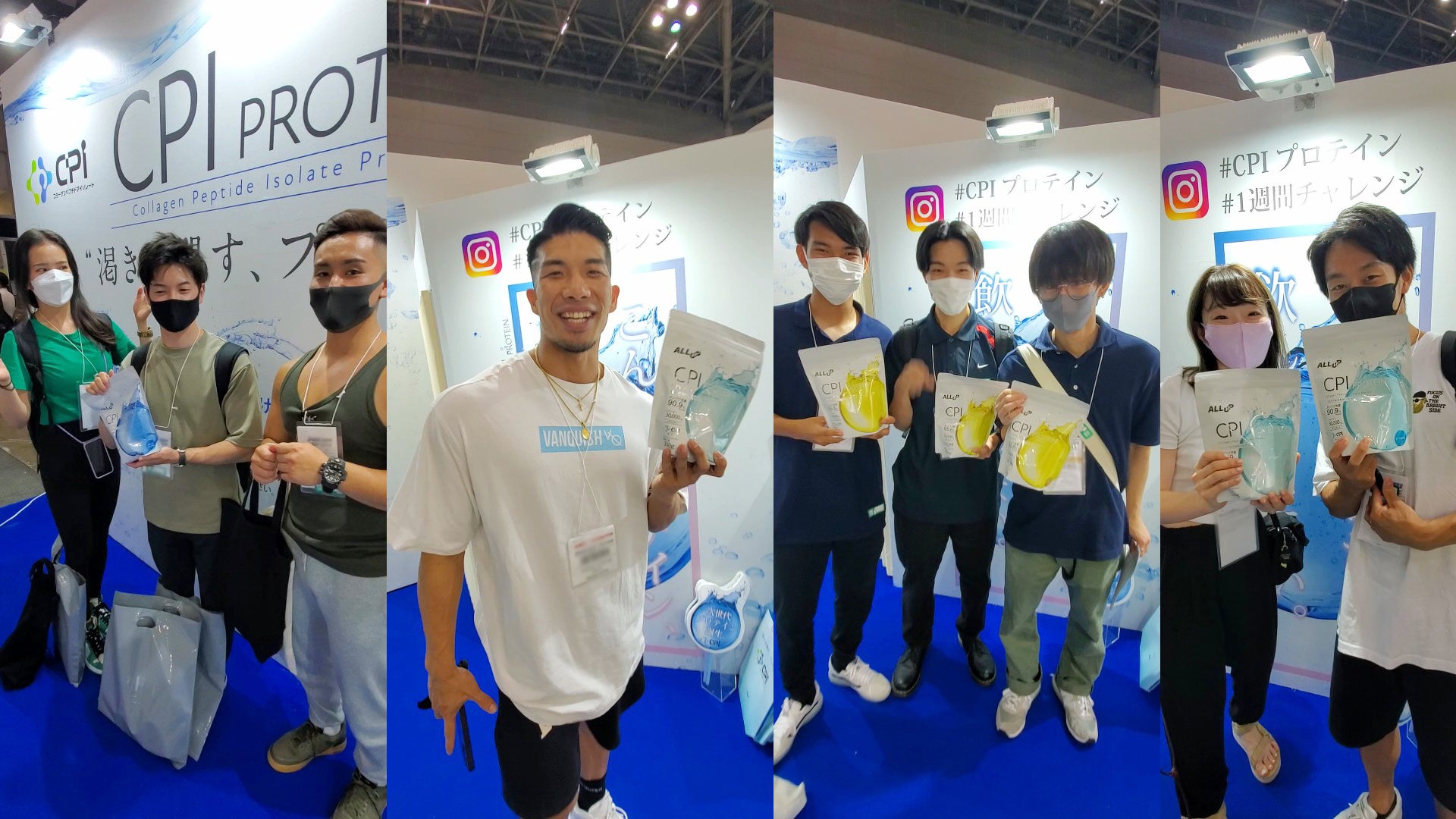 コラーゲン由来の珍しいプロテインということで、男性のお客様だけではなく女性の方も興味深々でコラーゲンについてなど詳しく聞かれていく方も。会場内でのCPIプロテインとホエイプロテインの溶けやすさの実演にも多くの方が集まっていただき、溶けやすさについてもその目で確かめて頂きました。
