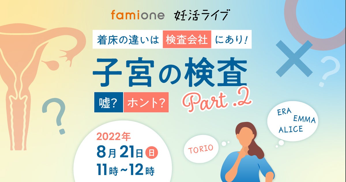 「子どもを願うすべての人によりそい 幸せな人生を歩める社会をつくる」をビジョンに掲げ、LINEを活用した妊活コンシェルジュサービス「famione(ファミワン)」 https://lp.famione.com/ を提供する株式会社ファミワン(本社:東京都渋谷区、代表取締役:石川勇介、以下当社)は、「妊活ライブ」上にて、8月21日(日)に「着床の違いは検査会社にあり!『子宮の検査 嘘?ホント?』PART2」と題したオンラインセミナー(https://famione.com/live/live_free/220821/)を実施します。