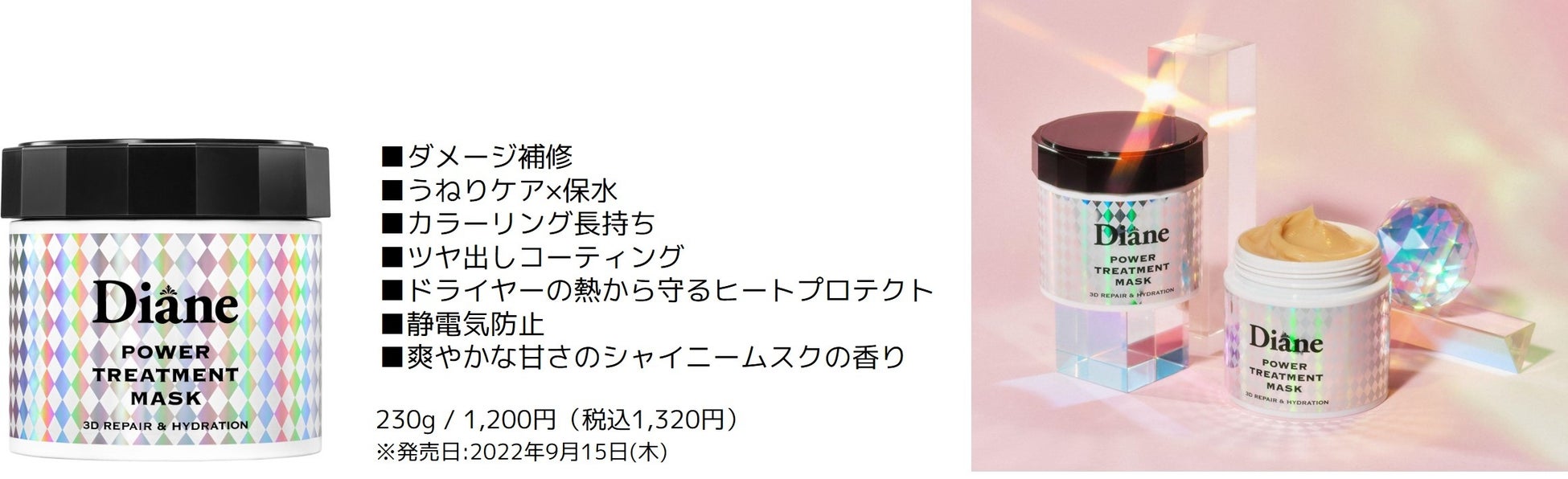 株式会社ネイチャーラボ(本社:東京都渋谷区)は、ヘアケアシリーズ『ダイアン パーフェクトビューティー』より、 髪質補修ヘアマスク「ダイアン パワートリートメントマスク」を全国のドラッグストアにて2022年9月15日(木)より発売いたします。