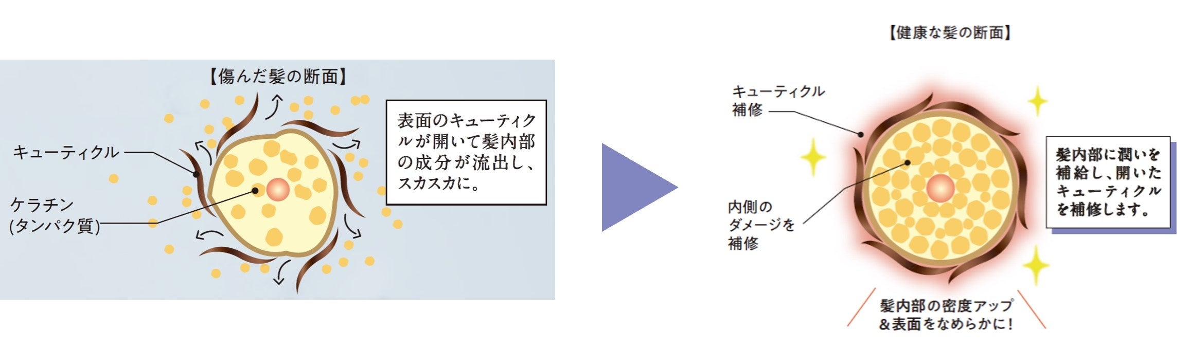 ダメージヘアの深部・内部・キューティクルまで浸透して立体的に集中補修