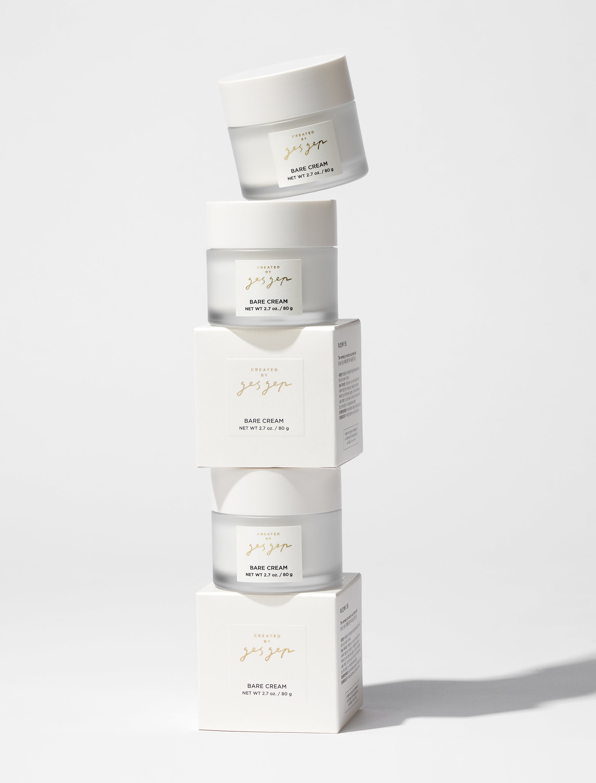 韓国女優やアーティストを担当する有名メイクアップアーティスト、ソン・デシク氏とパク・テユン氏、ふたりが手掛ける「gesgep」。ブランドのベストセラーである「ベアクリーム」は、どんな肌タイプの方にも馴染みやすく、刺激を与えずに十分な役割を果たす低刺激な保湿クリームです。健康な肌の脂質と最も類似した独自開発技術で、弱った肌のバリアを強化。ドラムスティック種子エキスとミセラー粒子が洗顔後に残った老廃物まできれいに取り除き、保護膜を形成して水分を維持します。朝晩のデイリーフェイシャルクリームとして使用するのはもちろん、メイク前の肌を整えるマッサージクリームとしてもおすすめです。