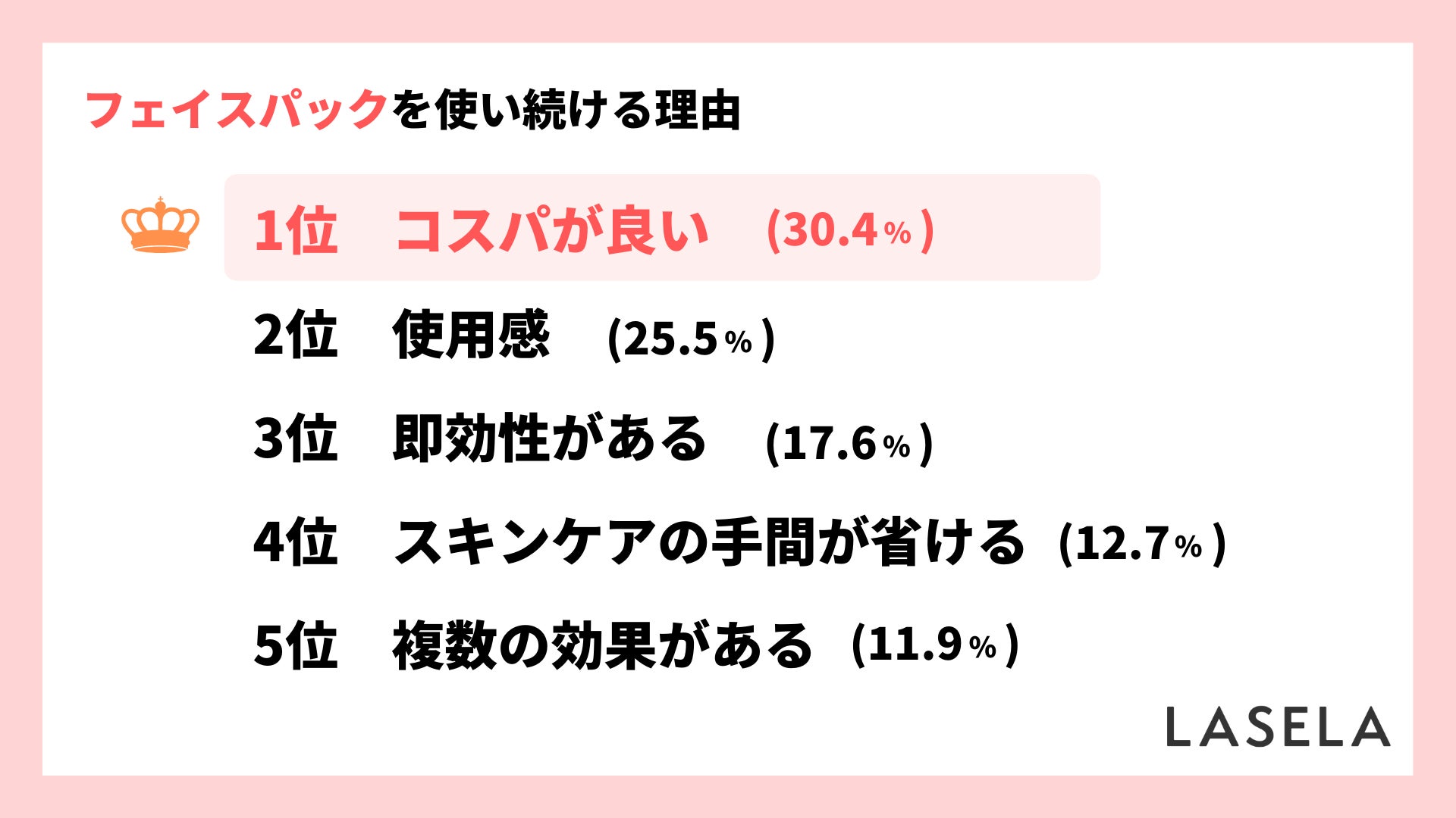 - フェイスパックを使い続ける理由は「コスパが良い」
