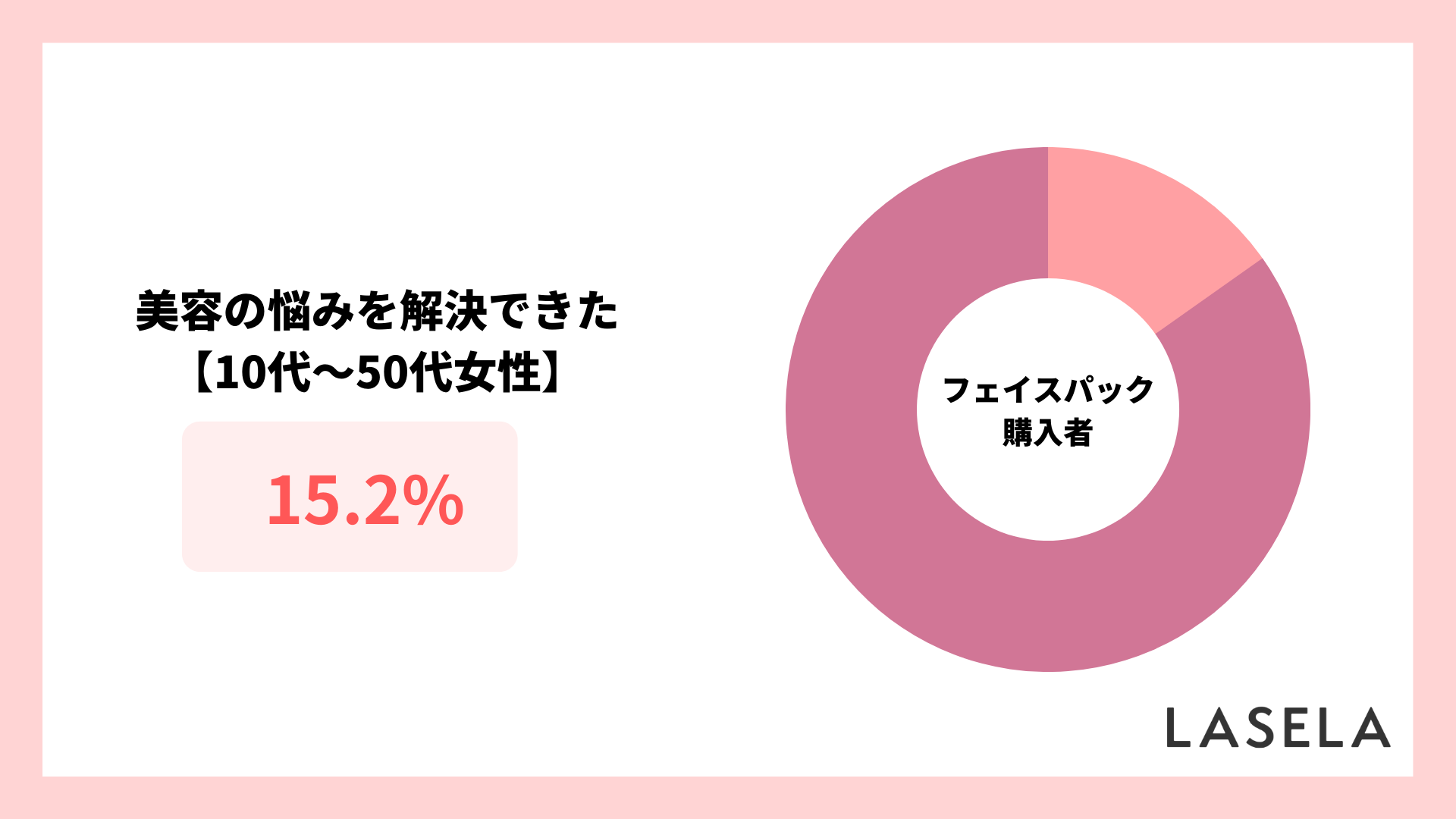 - フェイスパックを購入者のうち、悩みを解決できた人は15.2%