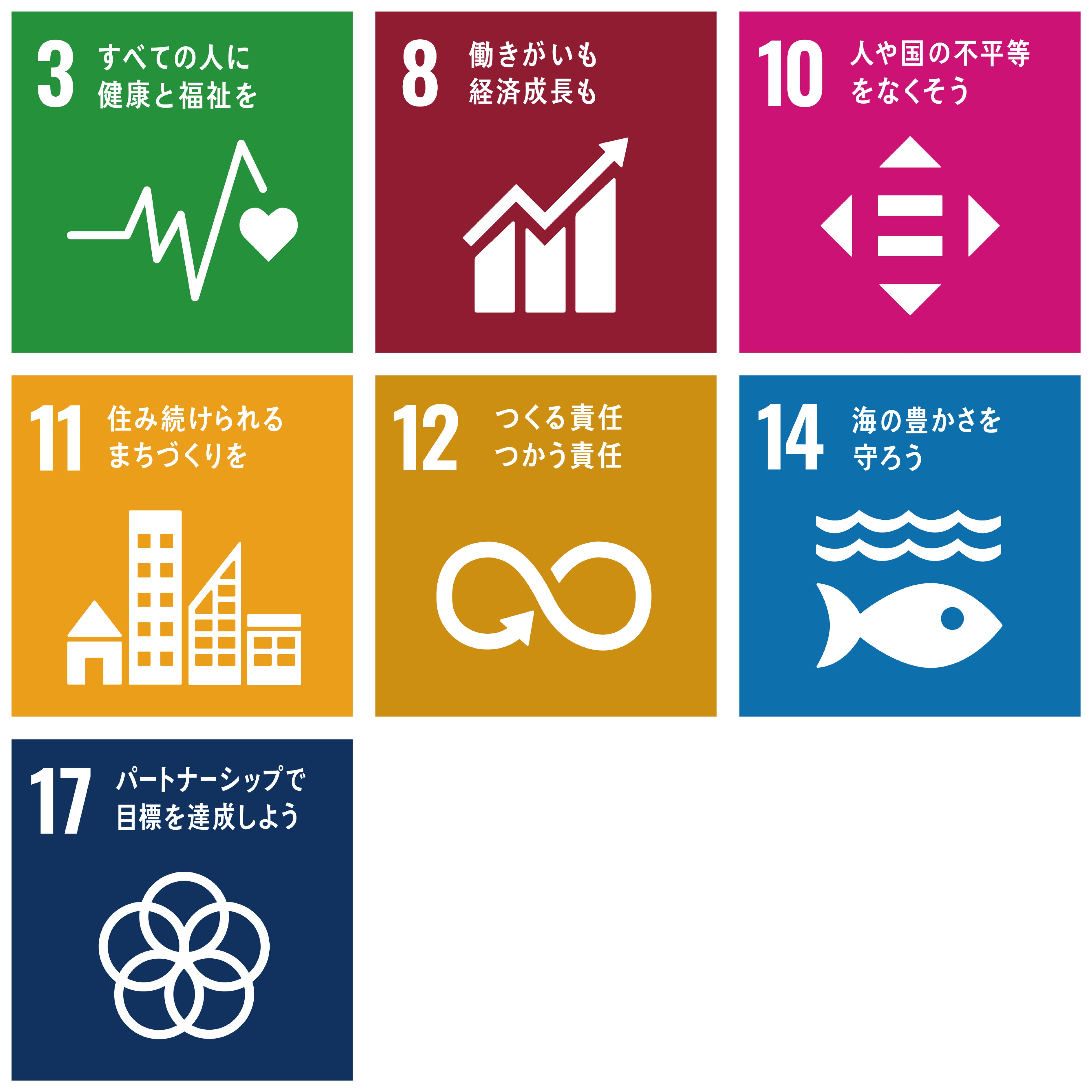 シオノギヘルスケアは、環境(Environment)、社会(Social)、ガバナンス(Governance)に配慮し、社会と共に成長いたします。国連サミットによる 国際目標「SDGs(持続可能な開発目標)」の中では、特に「③すべての人に健康と福祉を」「⑧働きがいも経済成長も」「⑩人や国の不平等をなくそう」「⑪住み続けられるまちづくりを」「⑫つくる責任 つかう責任」「⑭海の豊かさを守ろう」「⑰パートナーシップで目標を達成しよう」に着目し、社会課題を解決するための様々な取り組みを進めています。