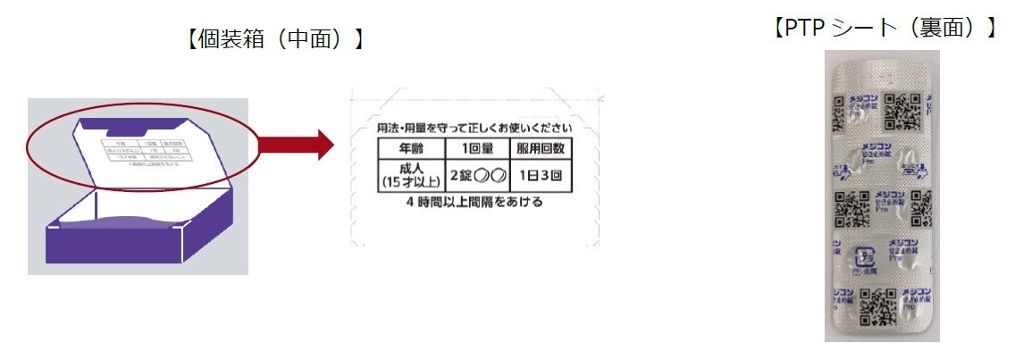 メジコンシリーズでは製品の適正使用推進のため、個装箱の中面に用法・用量を記載、薬を包装するPTPシートの裏面にQRコードを記載し、薬の情報をすぐに調べることが出来るようにするなど、すべての人にわかりやすいデザインを採用しています。