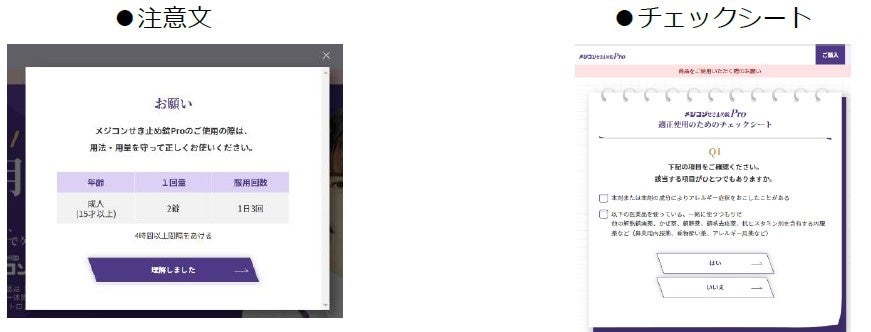 またブランドサイトでも適正使用の促進をサポートすべく、注意文が目に留まりやすいサイト設計及びチェックリストの設置を行っています。