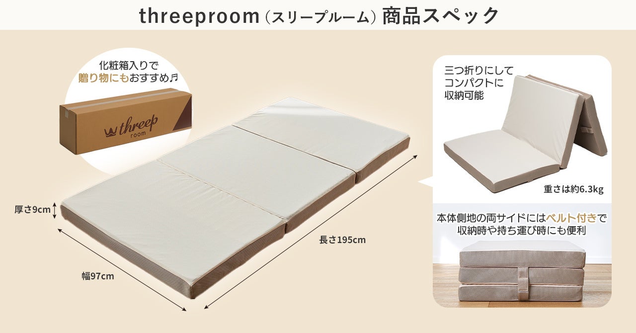 老舗寝具メーカー昭和西川株式会社(本社:東京都中央区日本橋浜町 代表取締役会長:西川 惠)は、快眠サポートマットレス”threeproom(スリープルーム)”を新開発し、7月29日(金)より応援購入サービス「Makuake」にて先行販売致します。