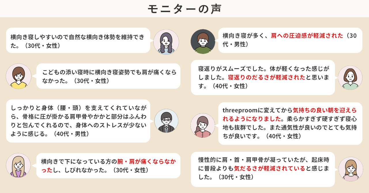 寝返りをすることで、身体に掛かる負担も軽減されるので快適にお休みいただけます。
