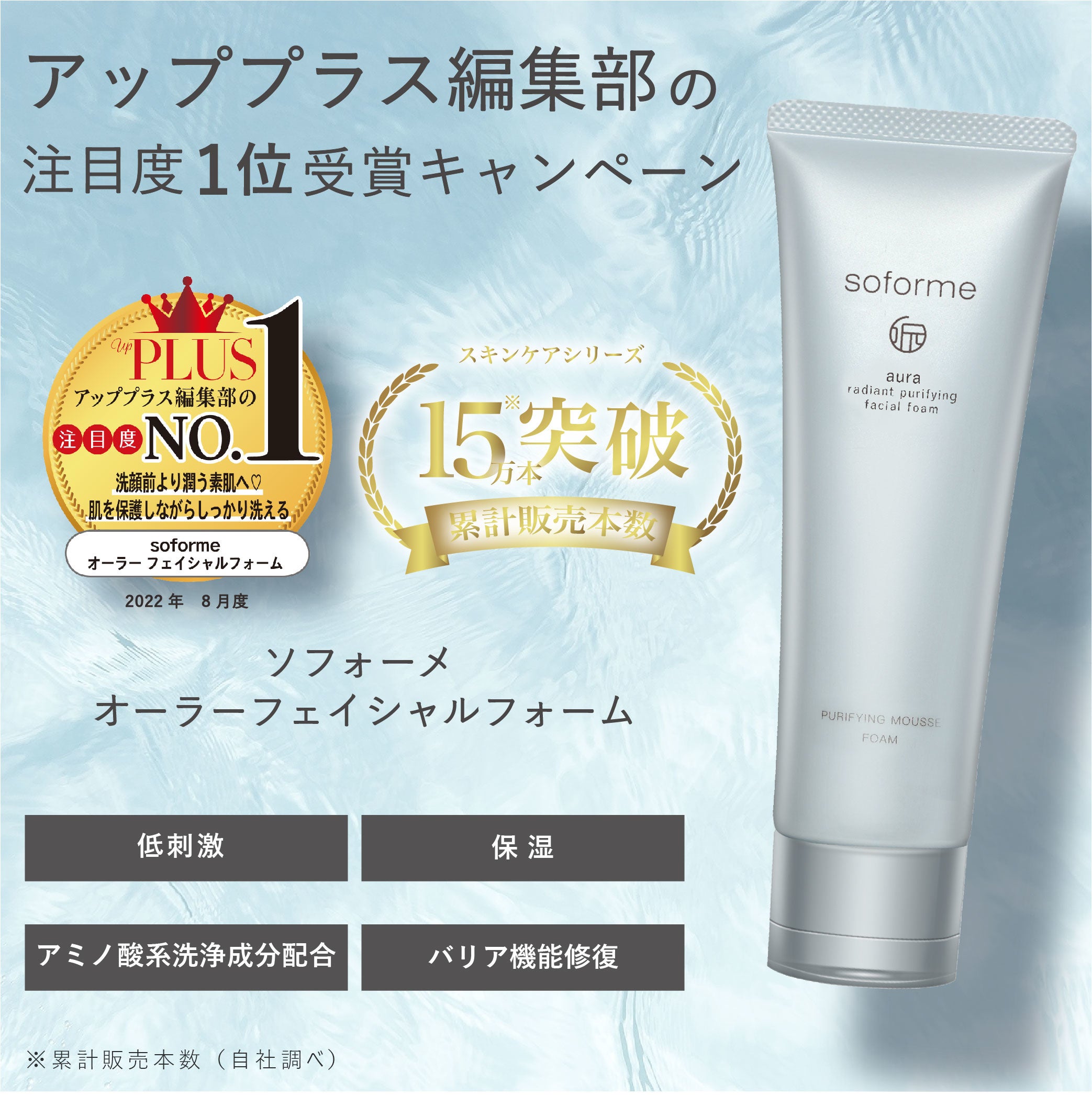 株式会社アクシア(本社:東京都新宿区/代表取締役社長:奥村 歩美)は皮膚の健康と美しさを追求する現代人に向けたスキンケアブランド「soforme(ソフォーメ)」の大人気洗顔フォーム「オーラーフェイシャルフォーム」が”美容雑誌 アッププラス“にて編集部の注目度No.1コスメに選ばれました。また、本商品の選出を記念して公式Instagram・Twitterでは8月10日(水)より各10名様に「soforme オーラーフェイシャルフォーム」が当たるキャンペーンを実施いたします。