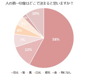 今回、全国の20〜30代の女性を対象に、メイクに関するアンケートを実施。それによって浮き彫りになったのが、「目元への関心の高さ」です。「人の第一印象はどこで決まると思いますか?」という質問では、半数以上の人が「目元」と回答しました。