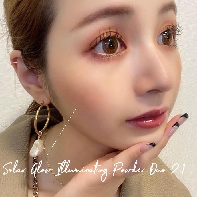 「自然なつやと血色感を演出するフェイスパウダー。新色はヘルシーな明るいピンクとオレンジ。お肌にのせると意外と馴染み浮かず、発色はかなりいいのでONするのは少量でOKです。」