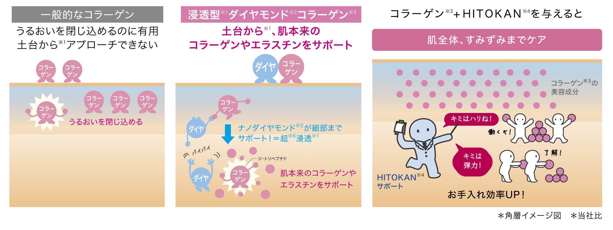 浸透型※1ダイヤモンド※2コラーゲン※3×HITOKAN※4で、最速※6ハリ・弾力ケア